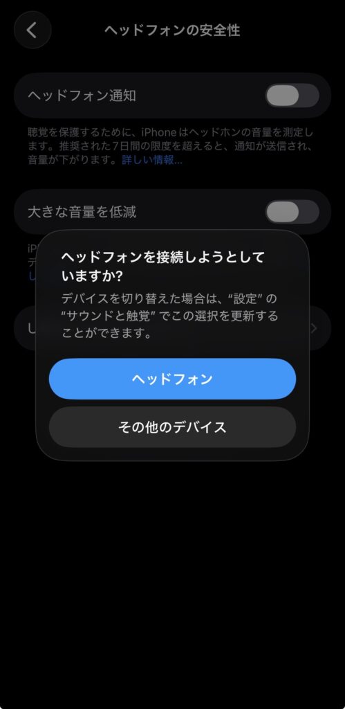 「ヘッドフォンを接続しようとしていますか?」という表示がされます。