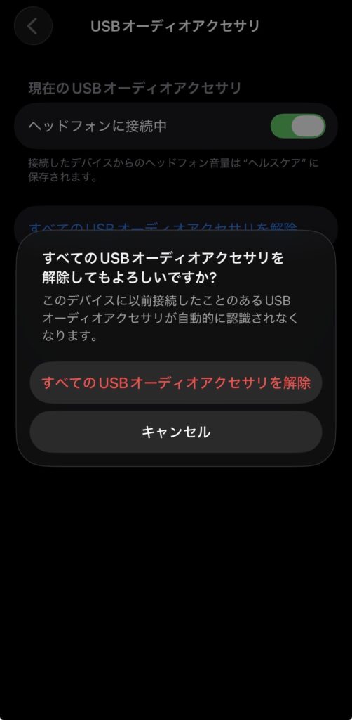 「すべてのUSBオーディオアクセサリを解除」を実行するとUSBオーディオアクセサリの設定が全てリセットされます。
